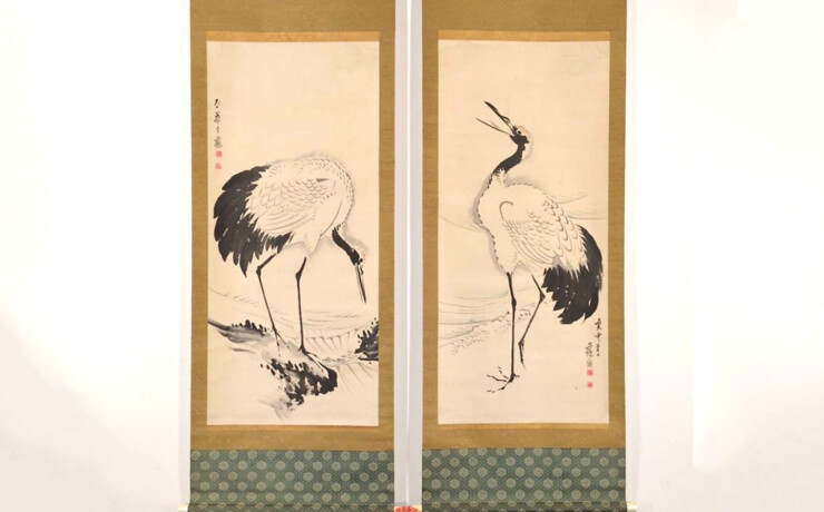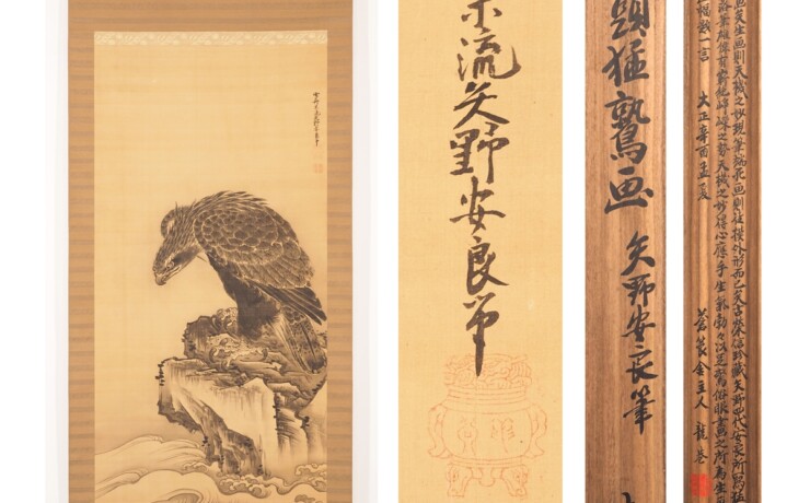 【高木古泉】 13775 掛軸 日本画 遊鯉図 合箱 絹本 花鳥図 熊本...