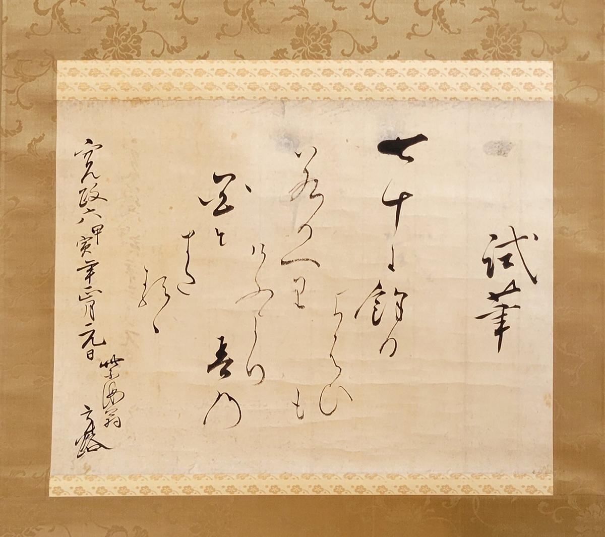 貴重資料!!竹原玄路(勘十郎)の試筆歌になります。熊本の郷土研究家宇野東風の識箱になります。竹原玄路(1720-1794)は江戸中期の武士で長く藩主に仕えました。また武芸に秀でており武田流や伊勢流などさまざまな流派を学んでいました。武田流流鏑馬の熊本での継承者となっております。この竹原玄路が継承していなければ現在の武田流は残っていないかもしれません。金額は電話、メールにてお問い合わせください。#渡鹿庵 #掛軸のある暮らし #掛軸表装 #掛軸買取り #掛軸の販売 #肥後 #掛軸 #熊本 #流鏑馬 #武田流