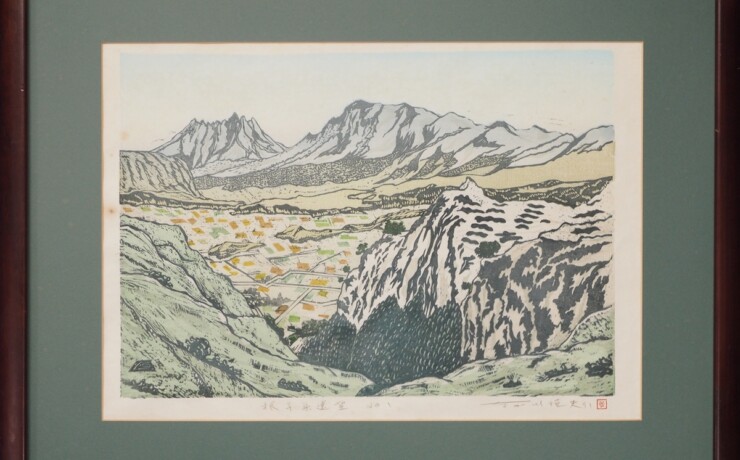 #中川恒夫 #絵画 #日本画 #木版画 #根子岳遠望 #根子岳が見える #根子岳 #風景画 #熊本 #渡鹿庵