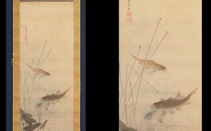#雲林院蘇山 #掛軸 #掛軸のある暮らし #掛軸表装 #掛軸買取り #掛軸の販売 #鯉 #日本画 #遊鯉図 #花鳥図 #肥後 #...