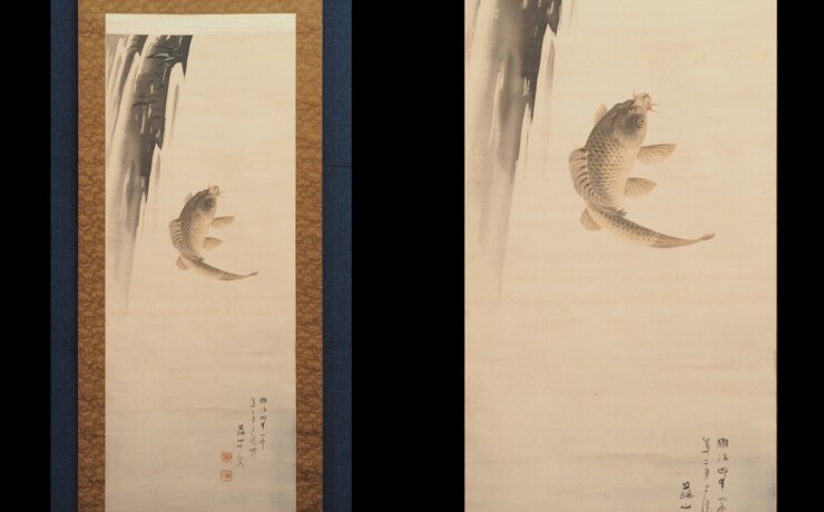 #雲林院蘇山 #掛軸 #掛軸のある暮らし #掛軸表装 #掛軸買取り #掛軸修復 #軸 #熊本 #肥後 #日本画 #瀧に鯉の図 #...