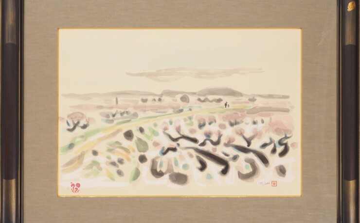 #牛島憲之 #絵画 #木版画 #桃の里 #風景画 #熊本 #洋画家 #東京美術学校 #桃 #果物 #渡鹿庵