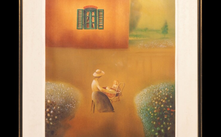#元村平 #絵画 #絵 #リトグラフ #子守の図 #EA版 #風景画 #熊本 #渡鹿庵 #家 #窓 #親子 #母親 #子供 #ゆりかご #...