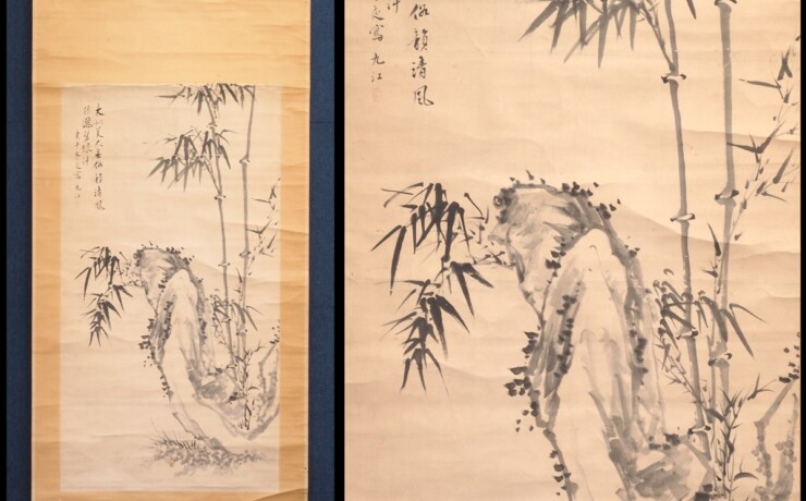 #梶山九江 #掛軸 #軸 #日本画 #水墨巌上墨竹図 #水墨 #熊本 #肥後 #渡鹿庵 #墨竹図 #竹図