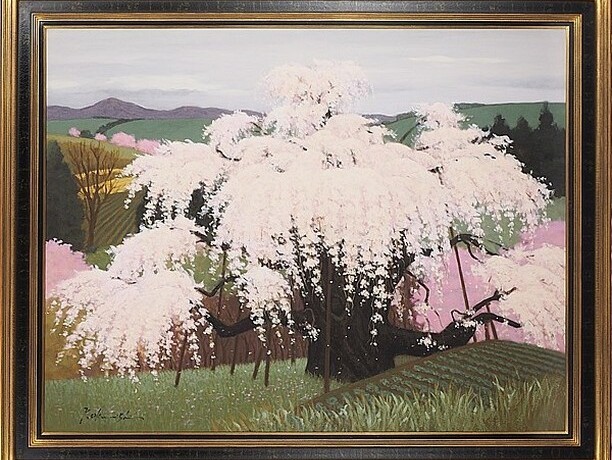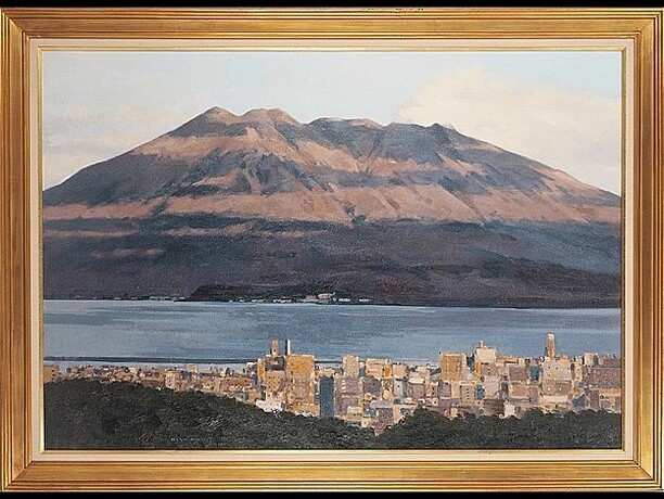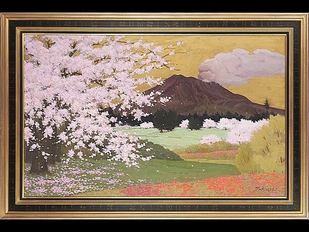 作者 奥西賀男題名 「桜と桜島」サイズ M50美術年鑑 号8万円参考価格 400万円箱、布、展示札付奥...