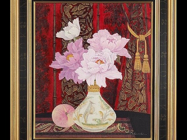 作者 奥西賀男題名 「牡丹」サイズ F10美術年鑑 号8万円参考価格 80万円箱、布、展示札付奥西賀...