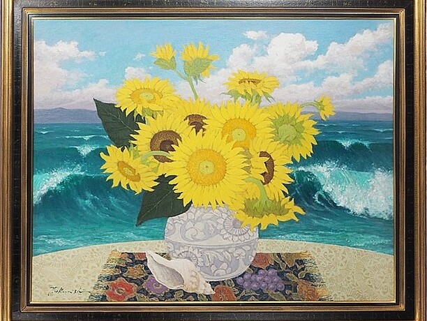 作者 奥西賀男題名 「ひまわり」サイズ F50美術年鑑 号8万円参考価格 400万円箱、布奥西賀男の「...