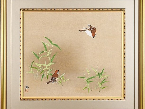 作者 堀川えい子題名 「竹雀」サイズ 10号美術市場 号12万円参考価格 120万円箱、布、展示札付堀...