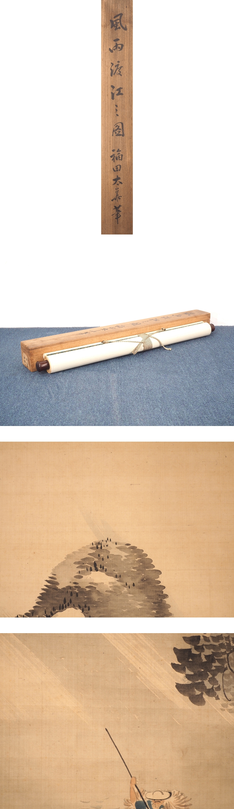 【福田太華】 17168 掛軸 日本画 風雨渡江之図 合箱 絹本 山水図 熊本 肥後 肥後土佐派の祖 在銘